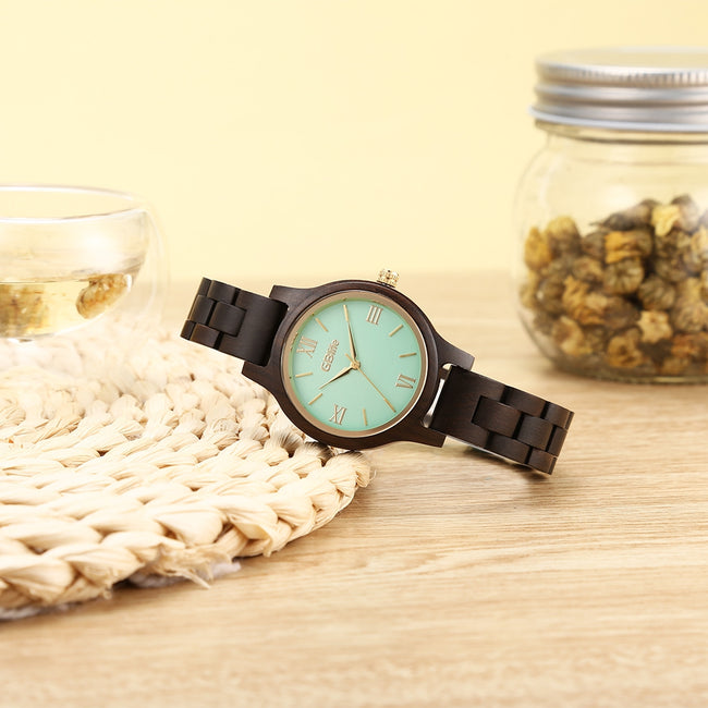 - With a solid wood case and strap, this timepiece is as beautiful as it is environmentally friendly.